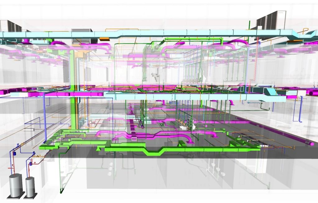 We model the trades, coordinate all systems with Architecture and Structure, and generate a full set of drawings MEP (Mechanical, Electrical and Plumbing lines)